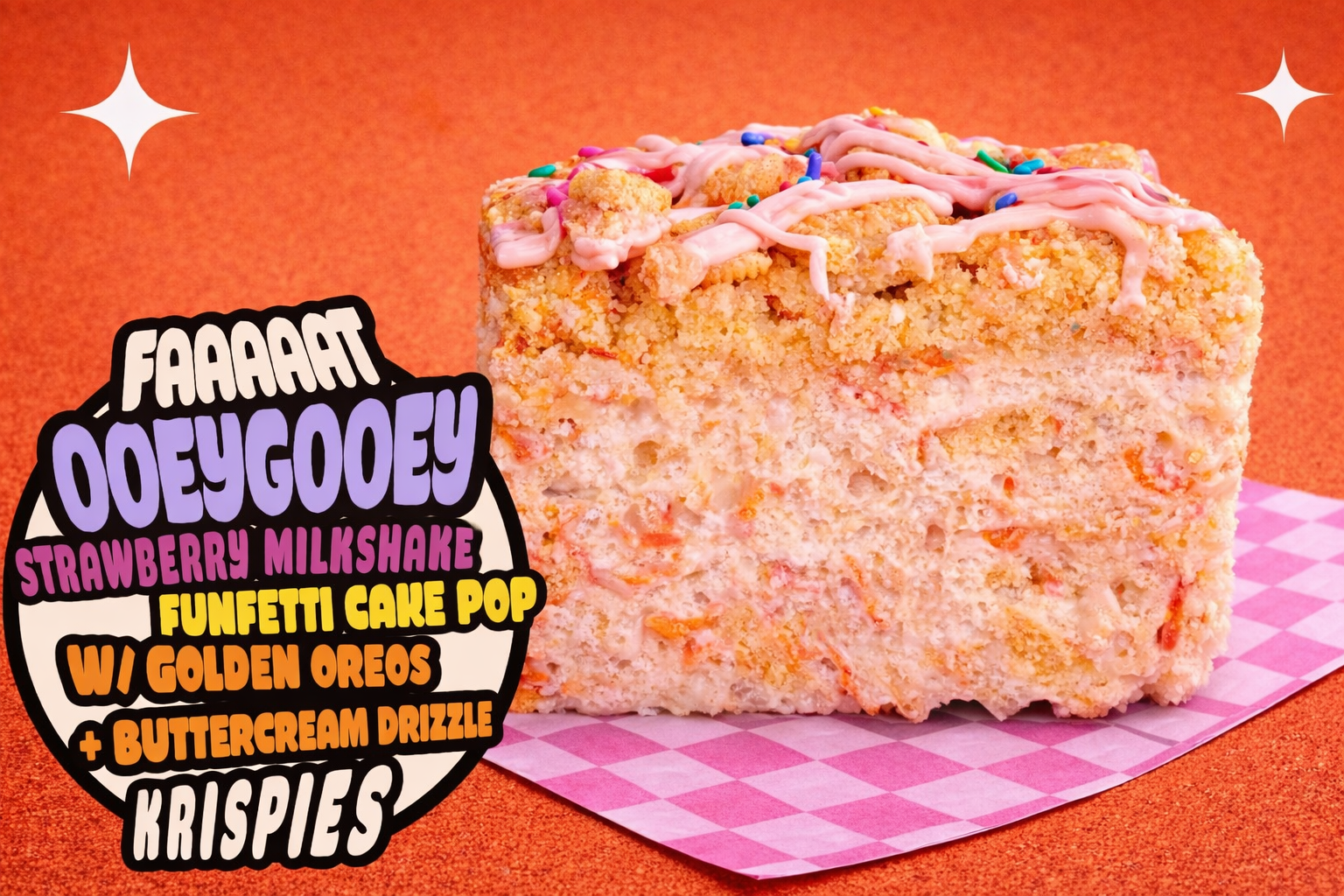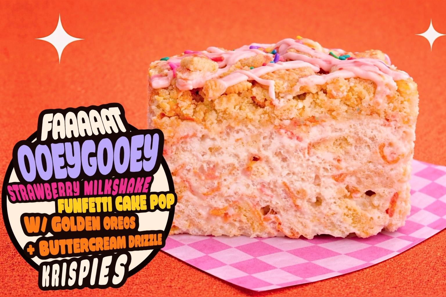 Bakery Style FAT Strawberry Milkshake Krispies w/ Funtetti Cake-Pop Crumble + Golden Oreos + Buttercream Drizzle